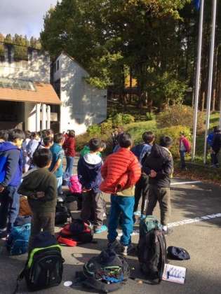 東玉川小学校との閉室式を終えて、これから村めぐりです。