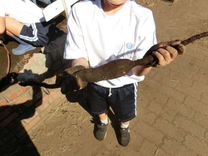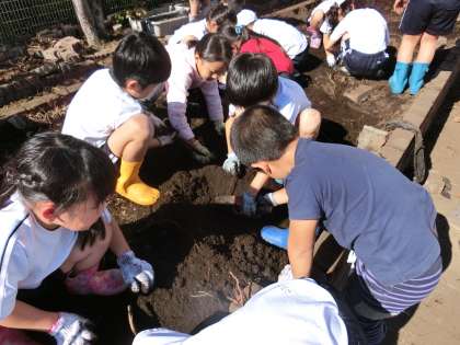 いもを見つけて大きな声をあげていました。