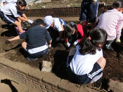 普段、土に触れる機会の少ない子どもたちですが、土の感触を楽しみながら、いもを探していきます。