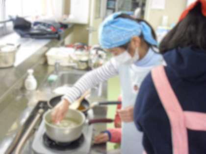 12月10日のクラブ活動では、白玉粉を使って、お汁粉とみたらし団子を作りました。