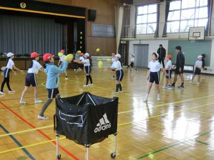 ラグビー教室を行いました。子どもたちは、緊張しながらも
