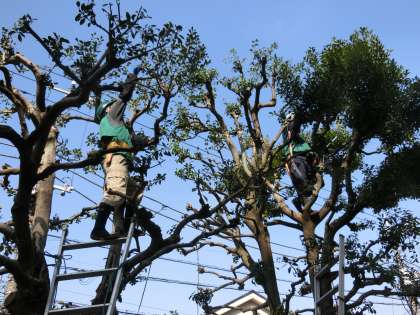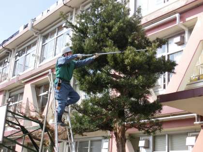 世田谷区からの斡旋で、緑友会の方々がボランティアで校内の樹木の剪定にいらしてくださいました。