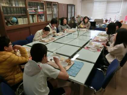 校長先生と卒業を間近に控えた6年生とで、会食会を行っています。