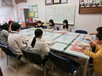 小学校での思い出や中学校に向けての思いなど、いろいろな話をしながら楽しく給食を食べました。