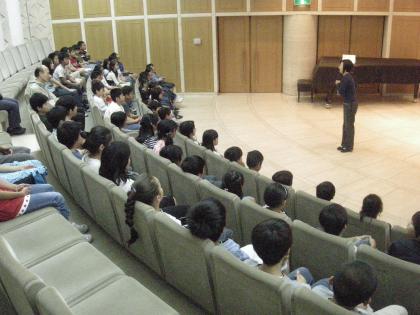 3日(金)、4年生が見術鑑賞教室に出かけました。朝8時50分にバスに分乗し世田谷美術館に向かい、ホールで説明を聞いた後、「鑑賞リーダー」と呼ばれるボランティアの大人の方が児童4・5人に一人ずつついて、館内をまわり説明してくれました。今日の展示は「ダニ・カラヴァン展」で立体作品が中心でした。最初は緊張気味の子どもたちでしたが、鑑賞リーダーの話に聞き入っているうち、美術の世界のおもしろさに気付いたようです。(写真:ホールで説明を聞く子どもたち)