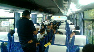 環八は事故のため渋滞!到着が遅れそうです。バス内で、のんびりしていきます。あわててもしょうがないですね!?関越道三芳PAで次の報告をします。