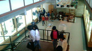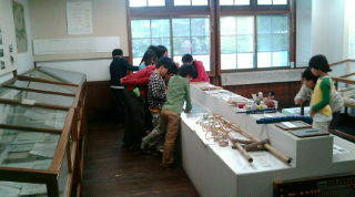 民族資料館のようすです。興味津々で一生懸命見学しています。