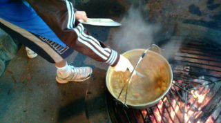 カレーとご飯を、作っている最中のようすです。大変です!