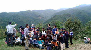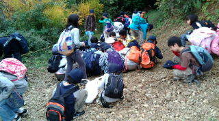下山道の見晴らしのよい所で、集合写真を撮り、少しだけ水晶探し。残念ながらあまり収穫はありませんでした。あとひとがんばりで、宿舎です。