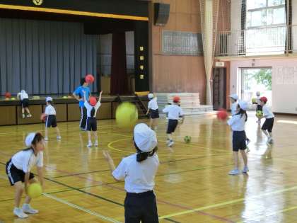 バランスをとりながら回ったり、ボールを使った様々な運動をしたりしました。