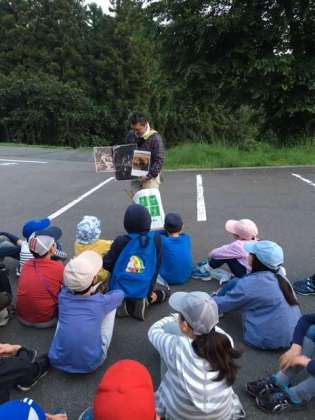 まだ、明るいのですが、川場村にすむ動物や木々など、自然について学びます。