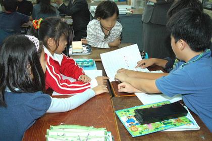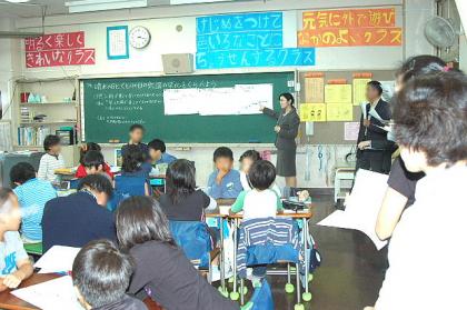 8日(水)午後、世田谷区立小学校教育研究会理科部の授業研究会が、本校4年1組(担任:福島千晶教諭)で行われました。この研究会は区内で理科教育を研究している教員の集まりで、この日も区内閣学校から多くの教員が集まりました。講師として昭和女子大学教授小川哲男先生をお招きして、来年度から実施される新指導要領の内容を先進的に取り入れた授業を見てもらい、その後の協議会で内容の検討を行いました。1日の気温の変化のしかたが天気によって異なることを予想し、自分たちで測定したデータとつき合わせて意見を出し合う授業でしたが、子どもたちがよく考え活発な意見交換ができたことに、集まった講師の先生を始めとして教員も関心していました。