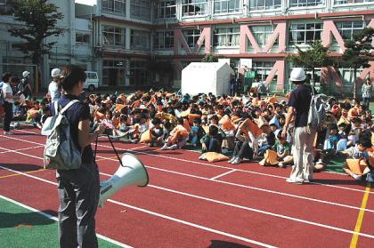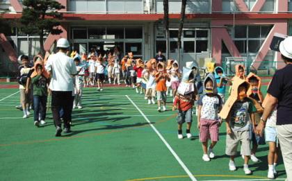 9日、5時間目の最初に、火災発生、2箇所の階段が使えないと言う想定で避難訓練を行いました。昼休みの直後の訓練で、落ち着いて行動できるか心配でしたが、みんなしっかり「おかしも」の約束を守って行動できました。さすが八幡の子です。職員も、教室の窓閉め(延焼を防ぐため)、校舎内の点検、児童の誘導、人員の確認など分担された役割を的確にこなしました。避難し終わって校庭に集合したとき、前後左右の子とおしゃべりする子が少数いたことが残念でしたが、それ以外はほぼ満足できる避難訓練でした。