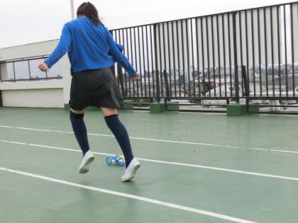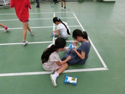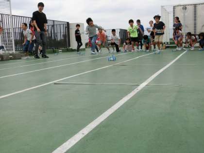 今日は、単元まとめとして、屋上でモーターカーを走らせました。
