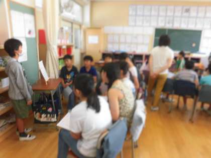 事前に自分で書いておいたカードで確認をしながら、夏休みの出来事について
