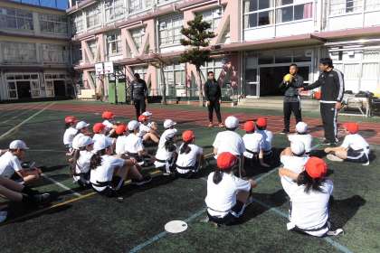 ラグビー教室を通して、「ラグビーの楽しさがわかった」「試合を見てみたい」などの感想をもちました。