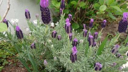 今日はプールの近くに、いい匂いのする植物を見つけました。「ラベンダー」です。よく見ると、一つ一つが小さな花です。ラベンダーにはいろいろな種類があるそうです。