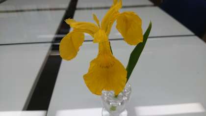 校長室のテーブルに一輪。黄色が鮮やかできれいでしょう。