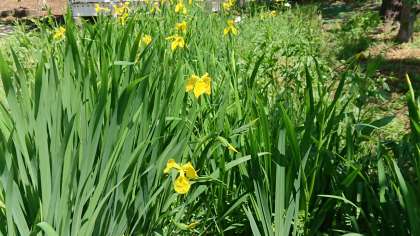 調べたところによると、黄菖蒲は日本全国の水田付近で見られる植物ということです。でも日本独自の植物ではなく、元々はヨーロッパ原産の外来種に位置づけられる植物で、他の生態系に影響を及ぼす植物なのだとか。外来種かもと思うと、見方・感じ方が変わってきます。でも、この黄色を見ていると、元気がでてくるように思いませんか。