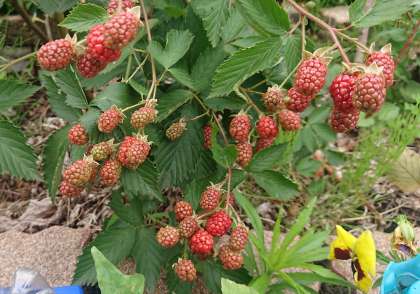 今日の実りは、ラズベリーです。だいぶ赤くなってきました。来週は、食べられるくらいになるでしょうか。