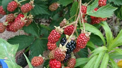 今日の八幡ファームでは、校長先生の予想に反して、実が黒っぽくなっていたのを見つけました。このラズベリーはこういう種類なのかもしれませんね。