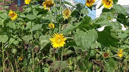 八幡ファームでは夏の花、ひまわりが咲いて、一部は種ができています。