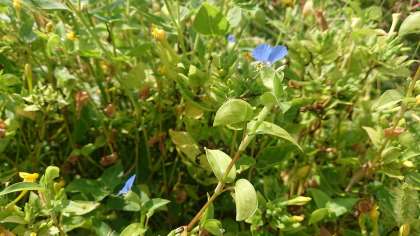 八幡ファームでは、つゆ草が、空の青さに負けないくらいさわやかな色の花をさかせていました。
