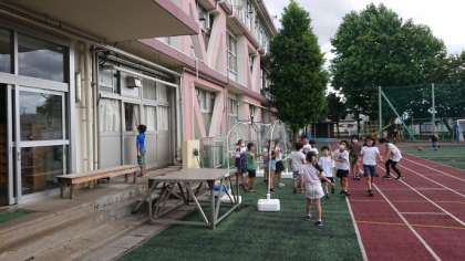 休み時間は夏の暑さで、今日もミストが活躍しています。