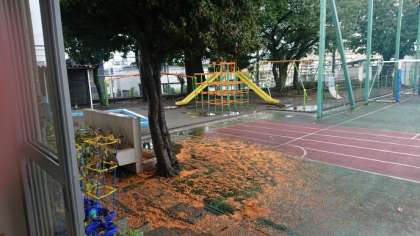 登校してきた子どもたちの検温チェックをしていたら、「校長先生、キンモクセイがきれいですね」と声をかけてくれた子がいました。ほんとうにその通りで、オレンジ色のカーペットのように、木の下にキンモクセイの花が落ちて広がっていました。