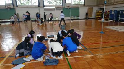 6年生がドローンを使ったプログラミングの学習を行いました。3週間前に隣のクラスも行った内容です。ねらったところへドローンを着陸させるために、時間や距離、角度をプログラミングして繰り返し試行します。なかなかうまくいきませんが、子どもたちはいちいち落胆することもなく、すぐにチャレンジします。