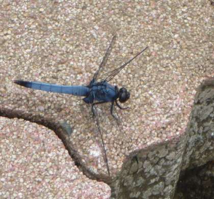 先日はシオカラトンボのメス、ムギワラトンボが学校園にいましたが、今回はオスのシオカラトンボ。とてもきれいな濃い青色で楽しそうに飛び回っていました。