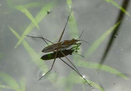 アメンボは急速に数が増え、稲の間を元気に行き来していました。表面張力で浮いている感じがよくわかります。