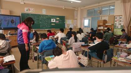 さて、5年生の社会の授業を見ました。工業製品と自分たちのくらしのかかわりを考える学習です。グラフから、1960年から1990年にかけて日本の工業生産額が大きく増加していることに「おお」と声が上がりました。電気洗濯機の変遷に興味をもって、先生の話しを聞いている子どもがいました。