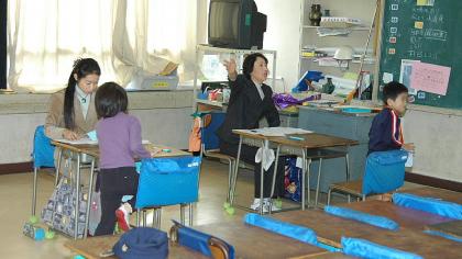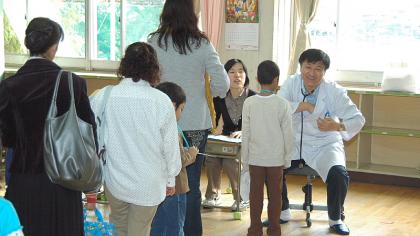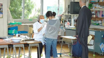 (写真上:内科検診。 写真中:歯科検診。 写真下:子ども面接。)就学時健診では、健康診断だけでなく、子どもtだけの面接と、親子一緒の面接をしました。お行儀良くしっかりできていました。5年生が本当によくお手伝いしてくれたので、スムーズに進んで3時頃終了しました。