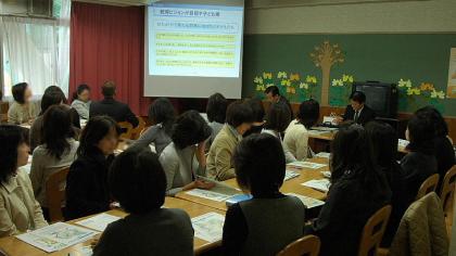7日(金)、11時からランチルームで教育委員会幹部職員が学校に赴き、区の教育施策について説明する「出前懇談会を行いました。今までは「学校協議会」の時に実施していましたが、今年度は、主に保護者の方々を対象にPTA実行委員会の後に行いました。約50分間、教育ビジョン第2期行動計画についてプレゼンテーションソフトを使用して説明をしてもらい、最後にお二人の方から質問がありました。パンフレットも多めに持ってきてもらいましたので、関心のある方は玄関のPTA掲示板の下にありますのでお持ちください。