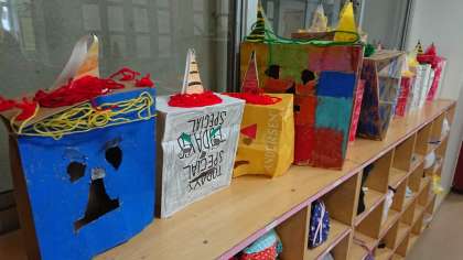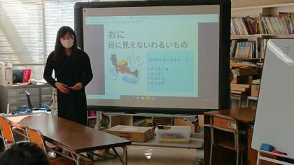 今日は節分です。1年生の教室には、個性豊かな鬼のお面が飾られています。もうひとつ作っているものがあったので、聞いてみたら、豆をまくときに入れる袋だということでした。鬼の顔をしたポーチのような小袋でした。後で、校長先生にもこの袋を作って持ってきてくれた人がいます。よく考えて作ってくれた小袋でした。豆まきに使ったあとは、しばらく校長室前に飾っておきたいと思います。ありがとうございます。