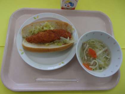白身の魚、メルルーサをフライにして、サンドしました。ボリュームのある一品です。