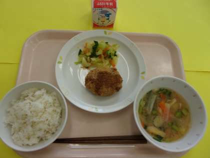 八丈島でとれた「むろあじ」を使ったメンチカツです。カレードレッシングであえた野菜を添えました。