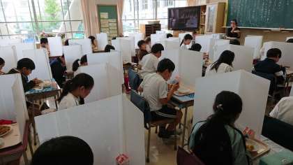 また、給食の時間はコロナ対策として、パーテーションを使っての給食ですが、とても静かな食事風景となっています。そのため、放送委員会による校内放送をよく聞いています。