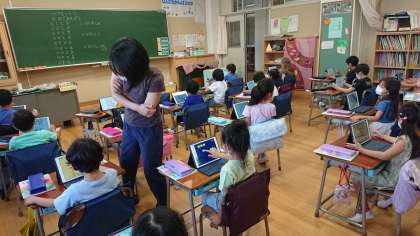 友達や先生と、タブレットを使ってやり取りをするのが楽しそうな1,2年生の姿をよく目にする今日この頃です。(写真は昨日のものです。)