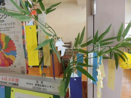 図書室には季節を先取りした、七夕飾りがありました。短冊に、図書室に置いてほしい本の題名を書いてもらいます、と司書の方が話していました。