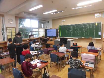 学校と自宅にいる子どもたちが、Zoom朝の会・健康観察から始まって、いろいろな教科で授業を受けていました。互いに全員の顔を見ながらの授業形態ばかりではなく、先生方が考えて行った授業でしたが、どうだったでしょうか。毎回、改善、工夫を加えてよりよいものにしていくつもりです。