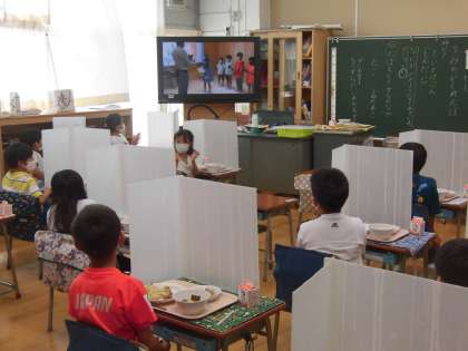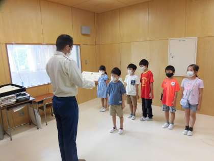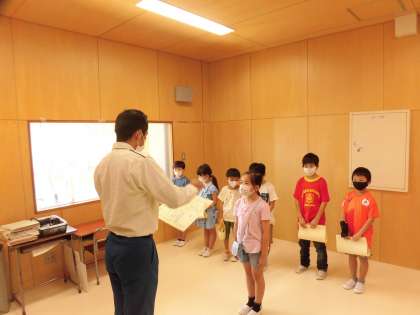 10月4日(月)中休み、放送室で玉川消防署の方より、はたらく消防写生会の入賞者へ賞状がおくられました。