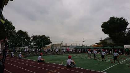これから始まるのは、1年生と6年生による「なかよし玉入れ」です。ダンスも見ものです。