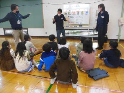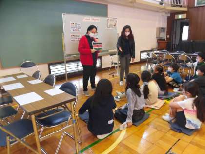 4年生が英語体験学習を行いました。生活の場面に分かれて、想定されるやり取りを英語で行うというものでした。英語の先生から質問されたことに、積極的に答え、楽しく英語体験を行うことができました。