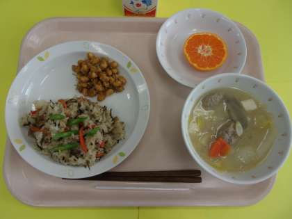 今日は節分です。豆まきの日です。節分献立を用意しました。