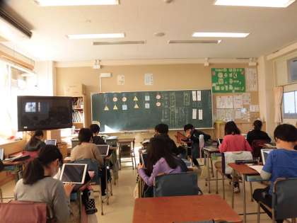 5年生の国語の授業では複合語について学習していました。クイズ形式の問題をつくる場面では、タブレットを使って集中して取り組んでいました。自分で問題をつくるといったことは、今までの学習の積み重ねがあってこそできるものです。子どもたちはよく頑張っていました。