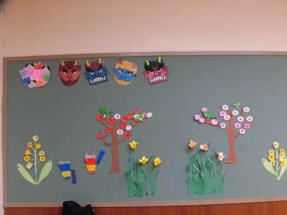 すまいるルームの教室掲示からは一足先に春を感じました。天気予報によると明日は雪が降るとか。大雪で被害がでないといいのですが。