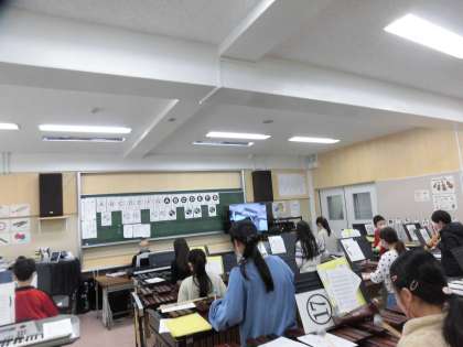 5時間目、音楽の時間に3年生がリコーダーの演奏をしていました。先生の範奏をよく聴いて、柔らかいいい音色で演奏していました。みんなで合わせる楽しさが伝わってくる授業でした。心が温かくなりました。