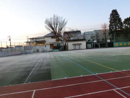 今朝の校庭です。立春が過ぎてこれからどんどん春めいてくるかと思っていましたが、今朝の冷え込みは厳しかったですね。副校長先生が思わずシャッターを切った、八幡小学校へ陽があたった頃の様子です。霜が白く輝いています。でも日の光があたると、見る見るうちに融けだして、いつもの校庭の色が現れたのだそうです。